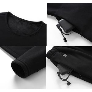 The thermal underwear is lined with high-quality fleece and windproof, keeps you warm on cold autumn and winter days.The material composition is made of 90% polyester and 10% elastane, flatlock seams, this thermal clothing offers maximum freedom for your body and protects your muscle trauma during training and sports.wicking fabric is ideal for drying and drying sweat quickly. The thermal base layer is perfect against unpleasant odours caused by sweat and dirt. You can use any 5V/2A power package to power the thermal underwear so you can easily keep warm on the go.With multiple carbon fiber heating elements that quickly generate heat over the core areas of the body, you can easily adjust the temperature as you like with three-speed temperature control.