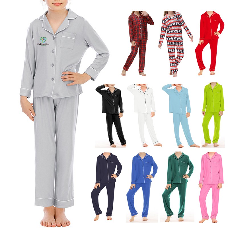 Made of soft comfy modal and cotton fabric. Cozy, comfortable, skin-friendly, lightweight and natural breathable. Fit for 5-14 years girls and boys.Long sleeve button-down sleep top for easy to put on and off. Chest pocket with classic notch collar.Loose comfy long pants with elastic waist, this comfort and lightweight sleepwear for child is the best pajamas.Christmas Pj Gift, Pajama party, sleep on it, sleeping wear, casual loungewear, daily wear, birthday gift. Fit for spring, fall, autumn, winter.