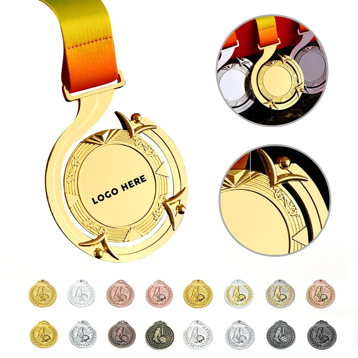 This unique, hollow commemorative medal features an innovative, spun design that is both elegant and functional. Crafted from durable aluminum alloy, it has a premium metal feel and is available in a variety of styles. The medal measures 2.6 inches in diameter with a customizable center, perfect for engraving a logo or event details. The refined frame showcases intricate details, making it an ideal keepsake for a sporting event, corporate awards, or special event. Paired with a vibrant gradient ribbon, it combines visual appeal with long lasting durability for a bold, stylish way to celebrate achievement.