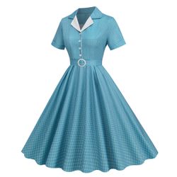 The Polyester Contrast Colored Suit Collar Slim Fit Dress is a chic and sophisticated garment. Made from high - quality polyester, it offers a smooth texture and good durability, while also being resistant to wrinkles. The dress features a suit - style collar in a contrasting color, adding a touch of elegance and a professional edge.It has a button - down front that extends to the waist, where a circular belt buckle cinches the silhouette, enhancing the feminine figure.Orders of 3000 pcs and over are shipped by ocean.
