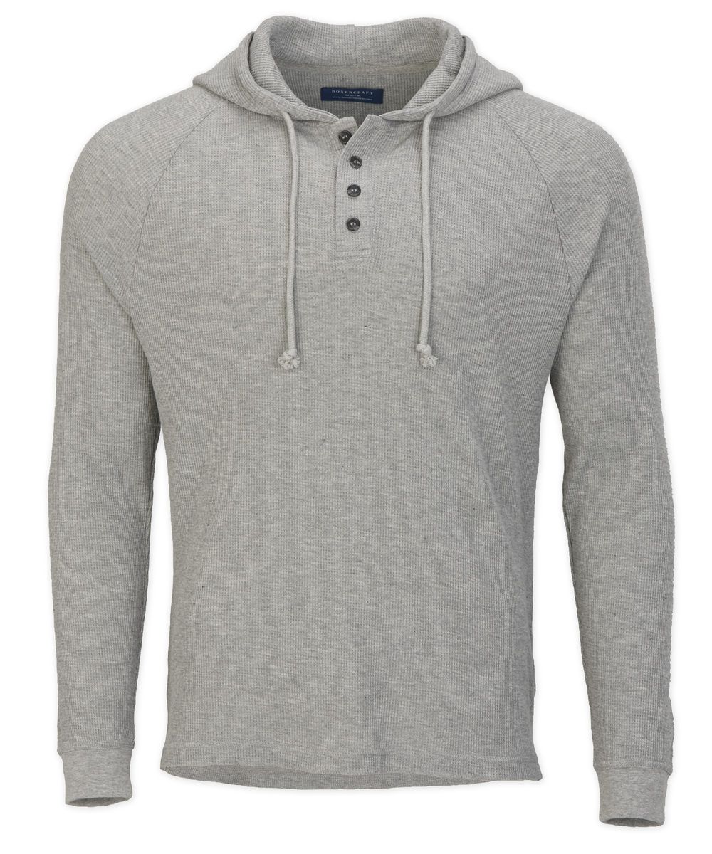 Elevate your laid-back look with this rugged yet refined waffle thermal knit pullover. Designed with a classic Henley button placket and a casual hood, it’s the perfect blend of comfort and style. The textured waffle knit adds depth and warmth, making it ideal for layering or wearing solo. Whether you’re heading out or kicking back, this pullover delivers a sharp, modern edge to your everyday essentials.