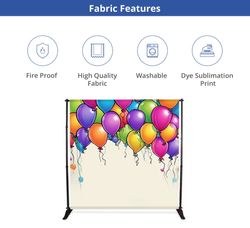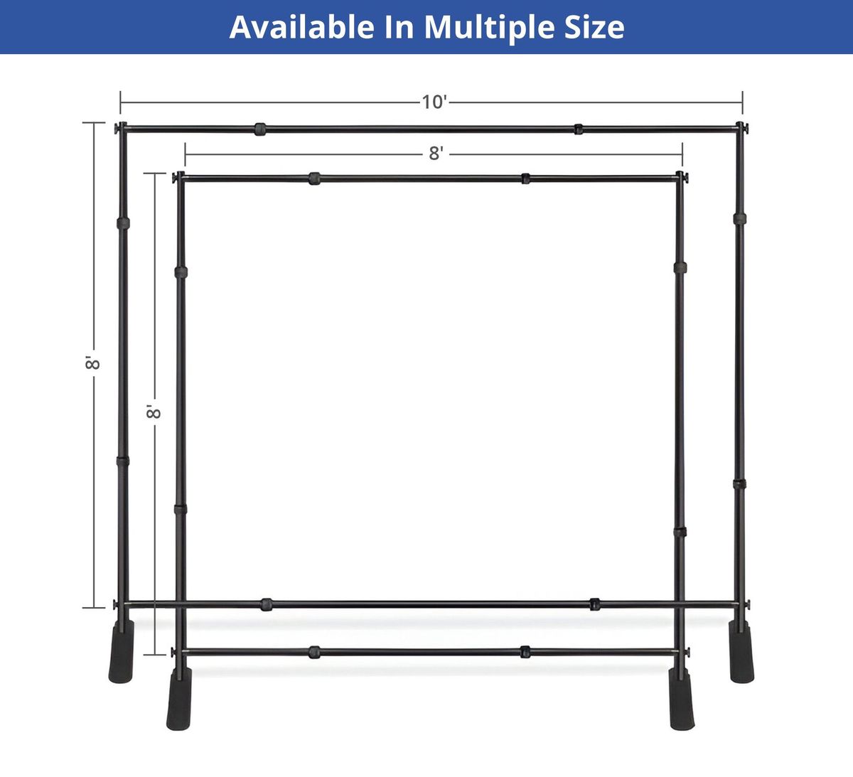 The Custom Backdrop features high-quality polyester fabric with a 230 GSM weight, ensuring vibrant and durable graphics. The backdrop is supported by a versatile pole system with varying diameters: 38mm at the bottom, 34mm in the middle, and 30mm at the top, all with a thickness of 1.4 mm for enhanced stability. This setup is ideal for creating professional and eye-catching displays.