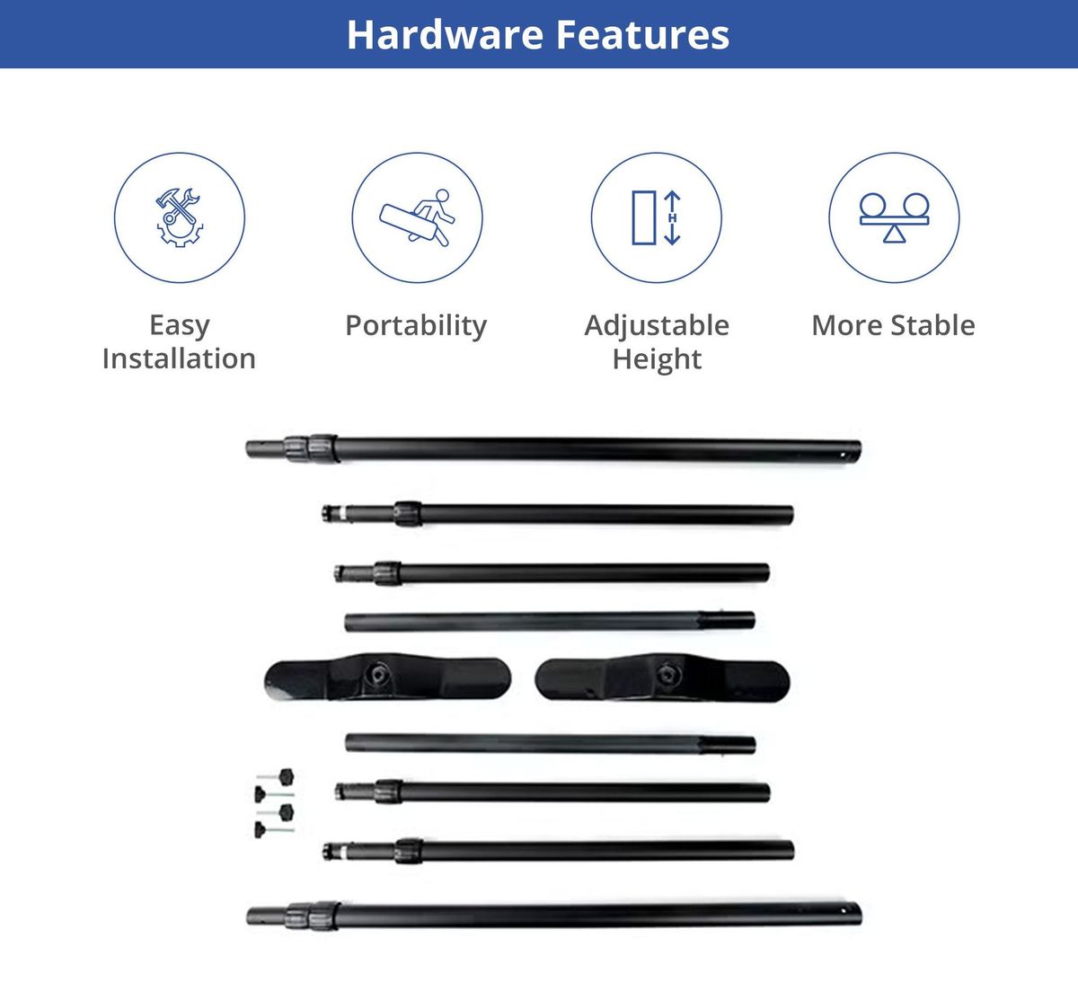 - Strong Frame Support: Stable aluminum poles with 1.5" bottom diameter and 0.05" (1.4 mm) thickness